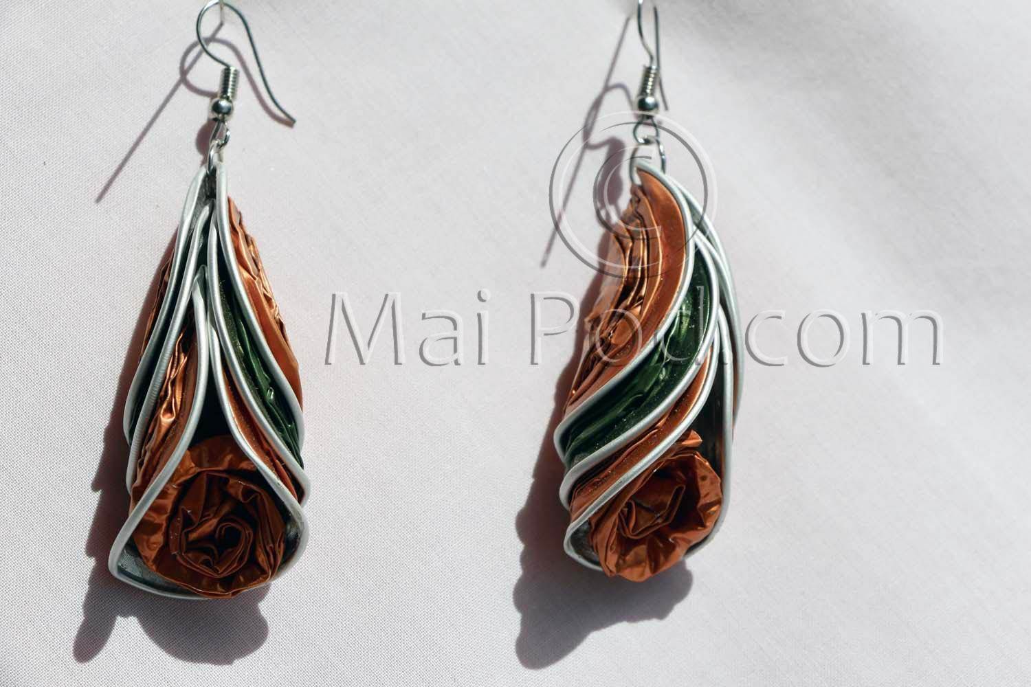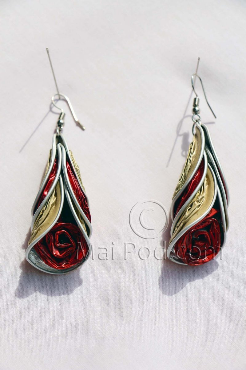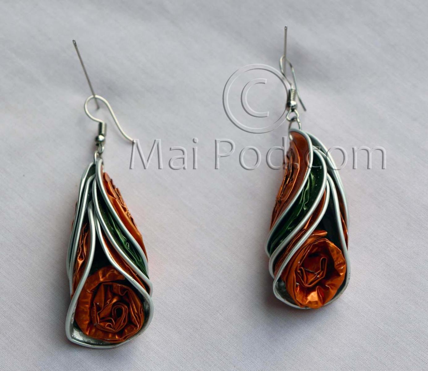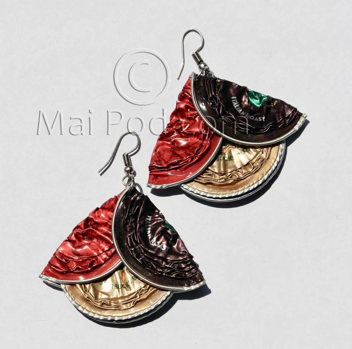 If you have pierced ears, Mai P. likely has made a set of earrings that appeals to you. Colourful, bright, and playful, it is hard to recognize these items as former coffee pods.