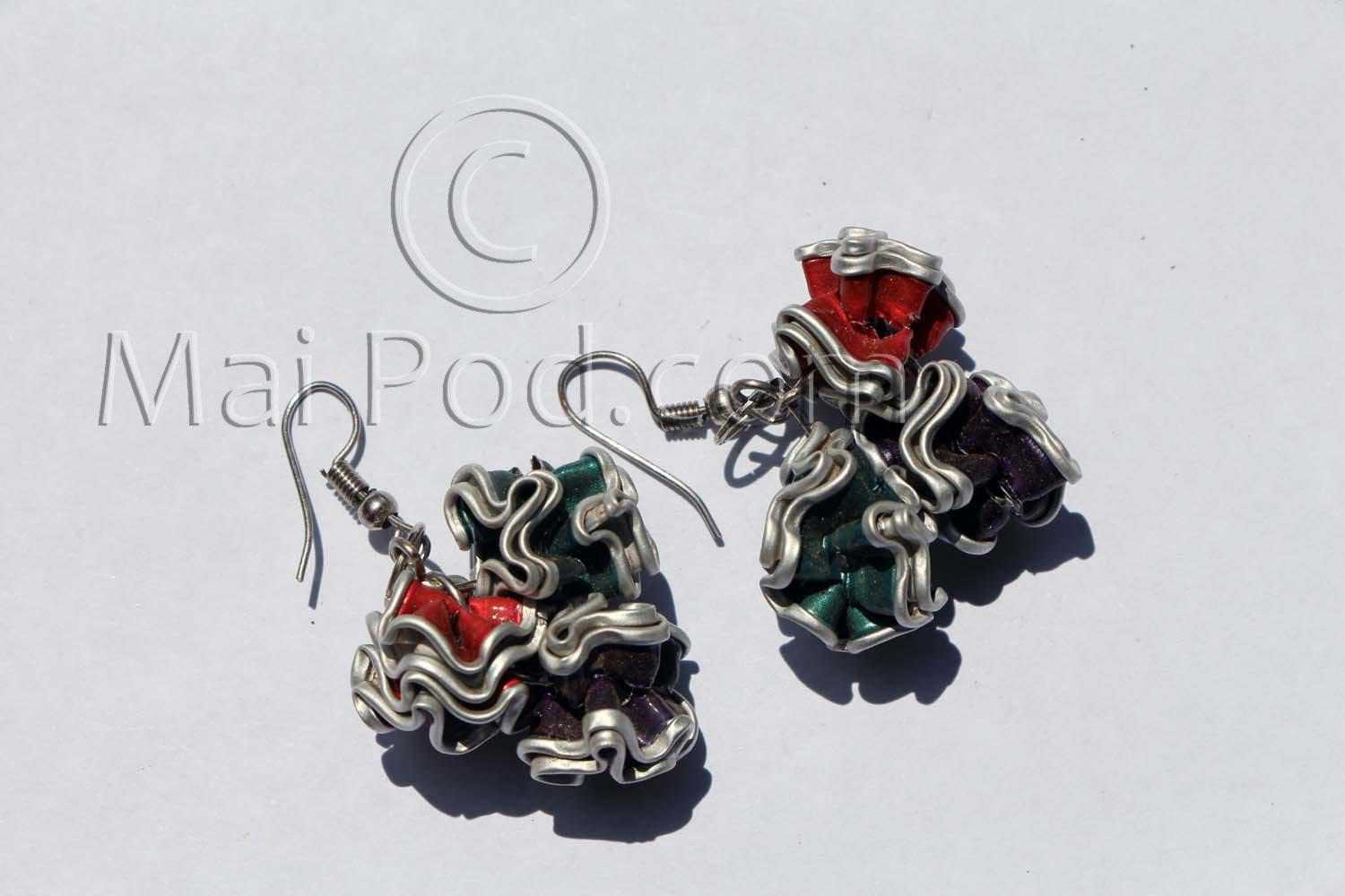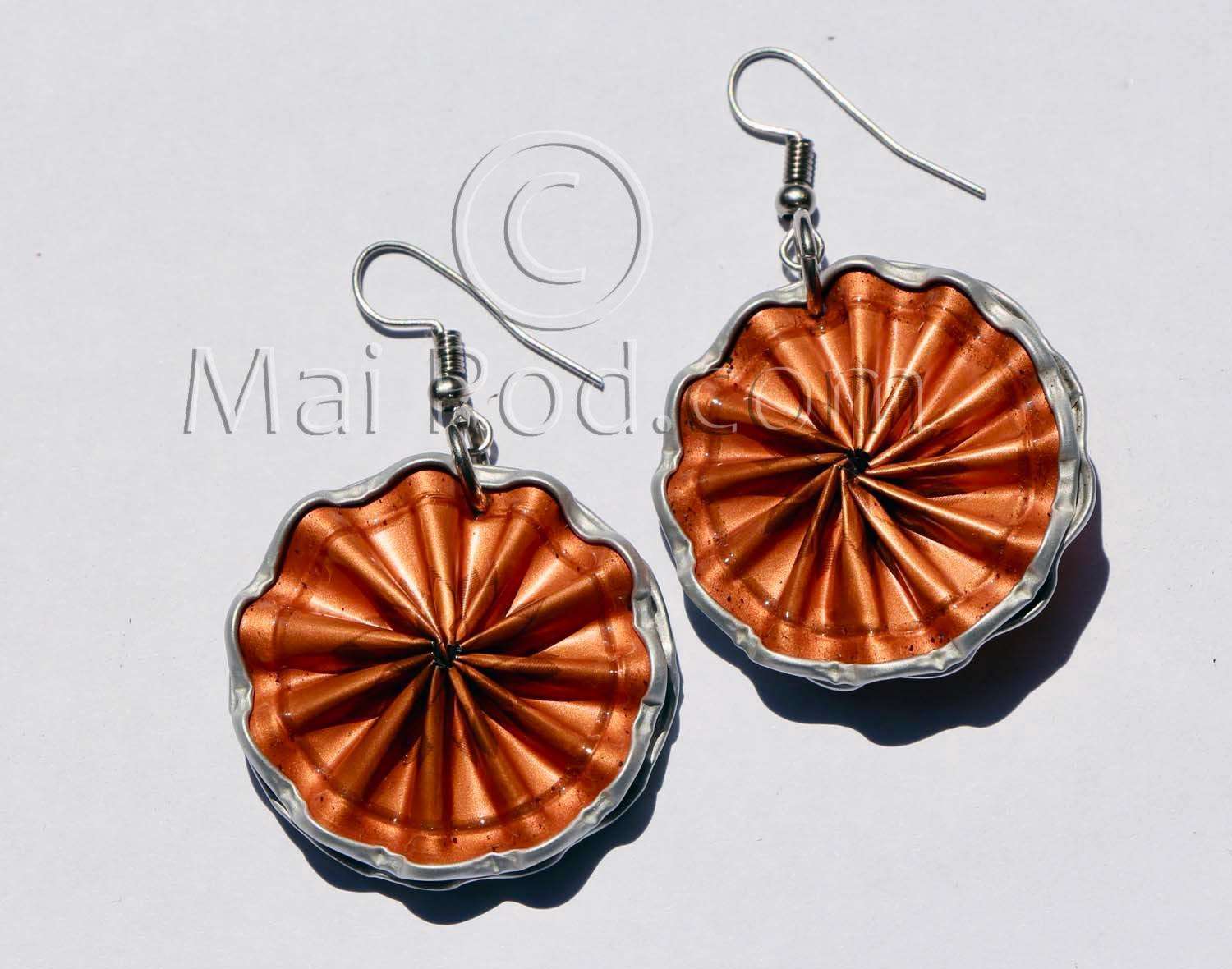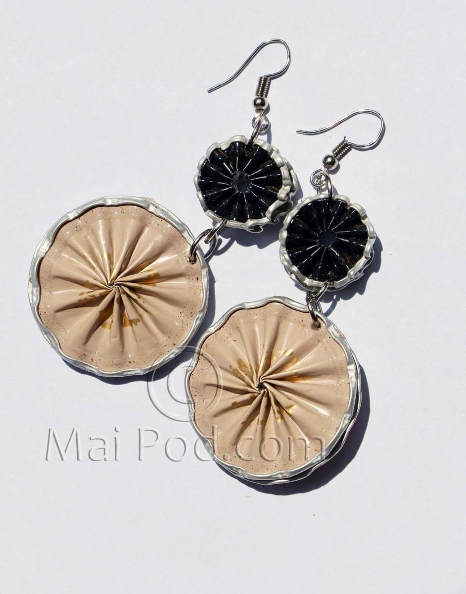 If you have pierced ears, Mai P. likely has made a set of earrings that appeals to you. Colourful, bright, and playful, it is hard to recognize these items as former coffee pods.