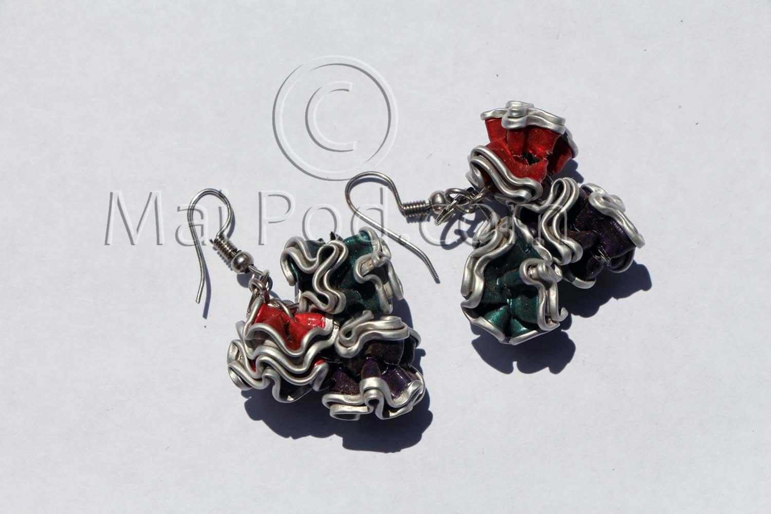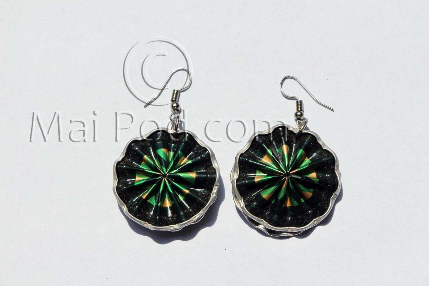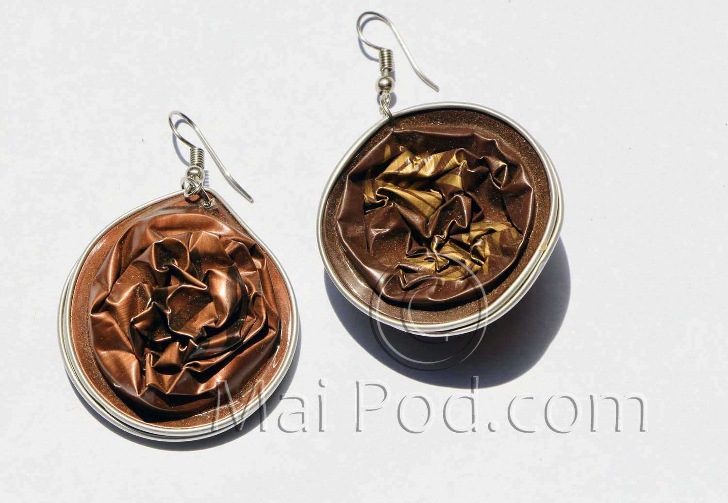 If you have pierced ears, Mai P. likely has made a set of earrings that appeals to you. Colourful, bright, and playful, it is hard to recognize these items as former coffee pods.