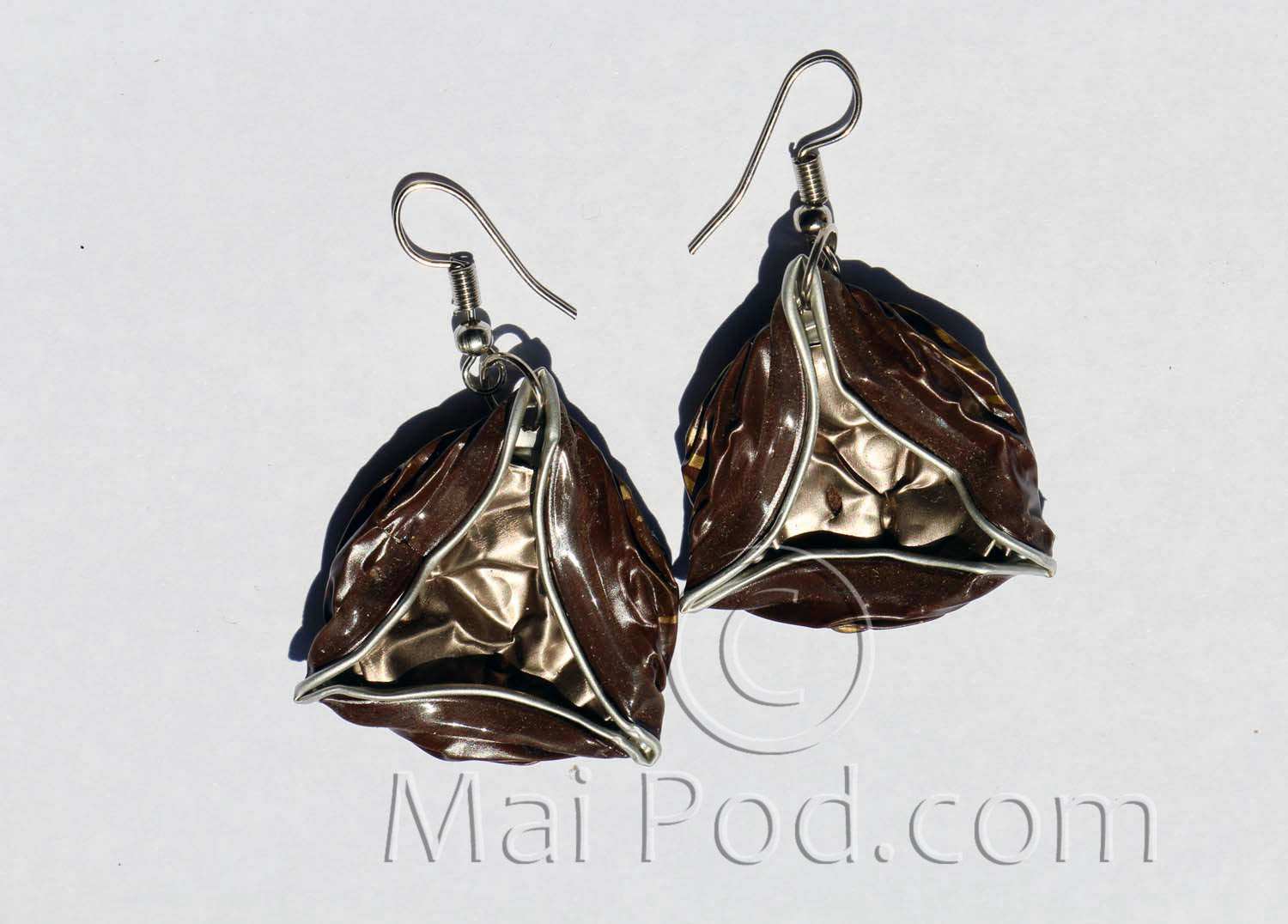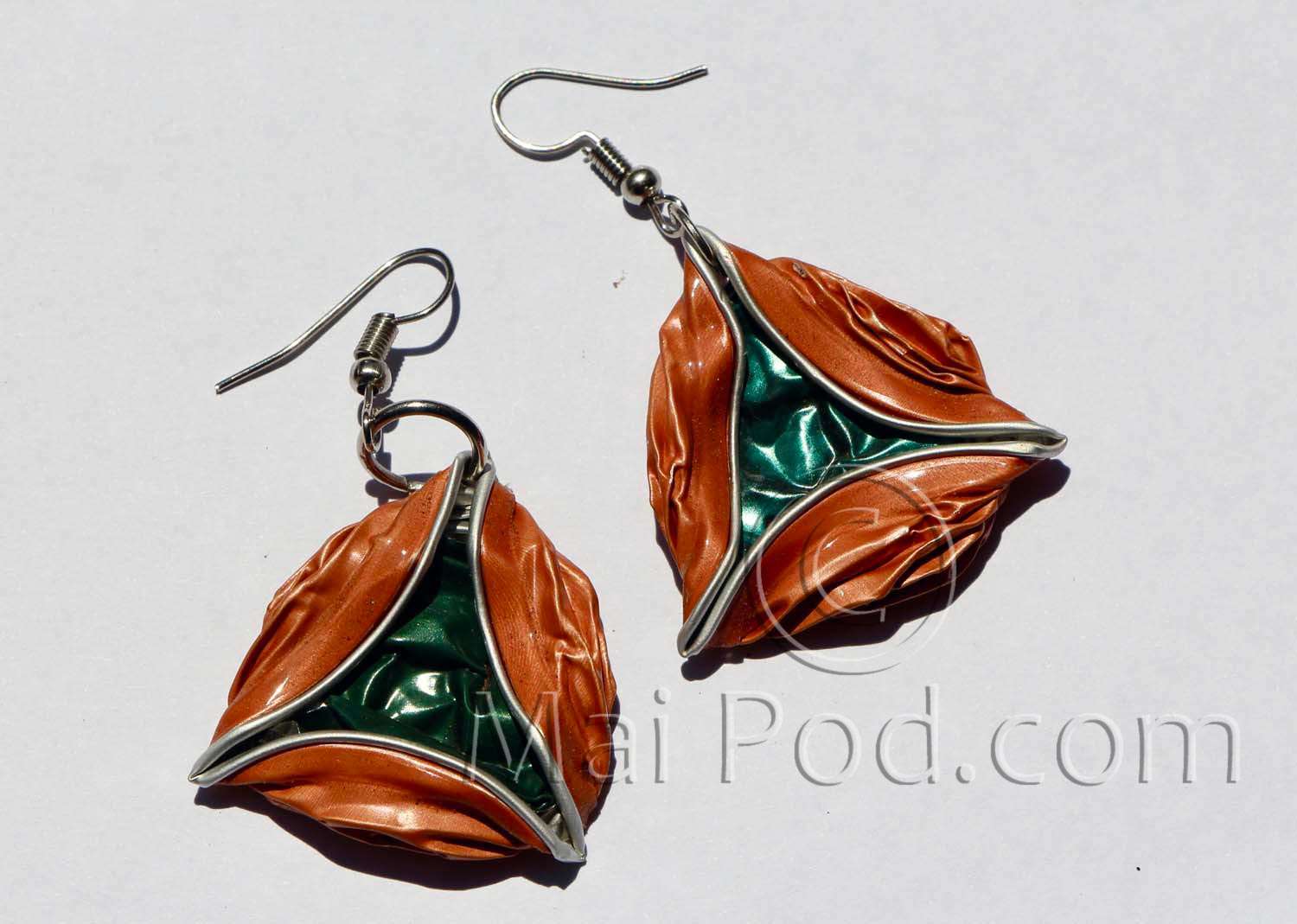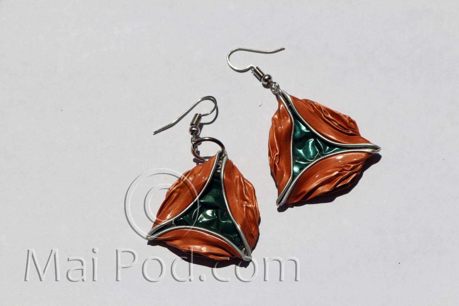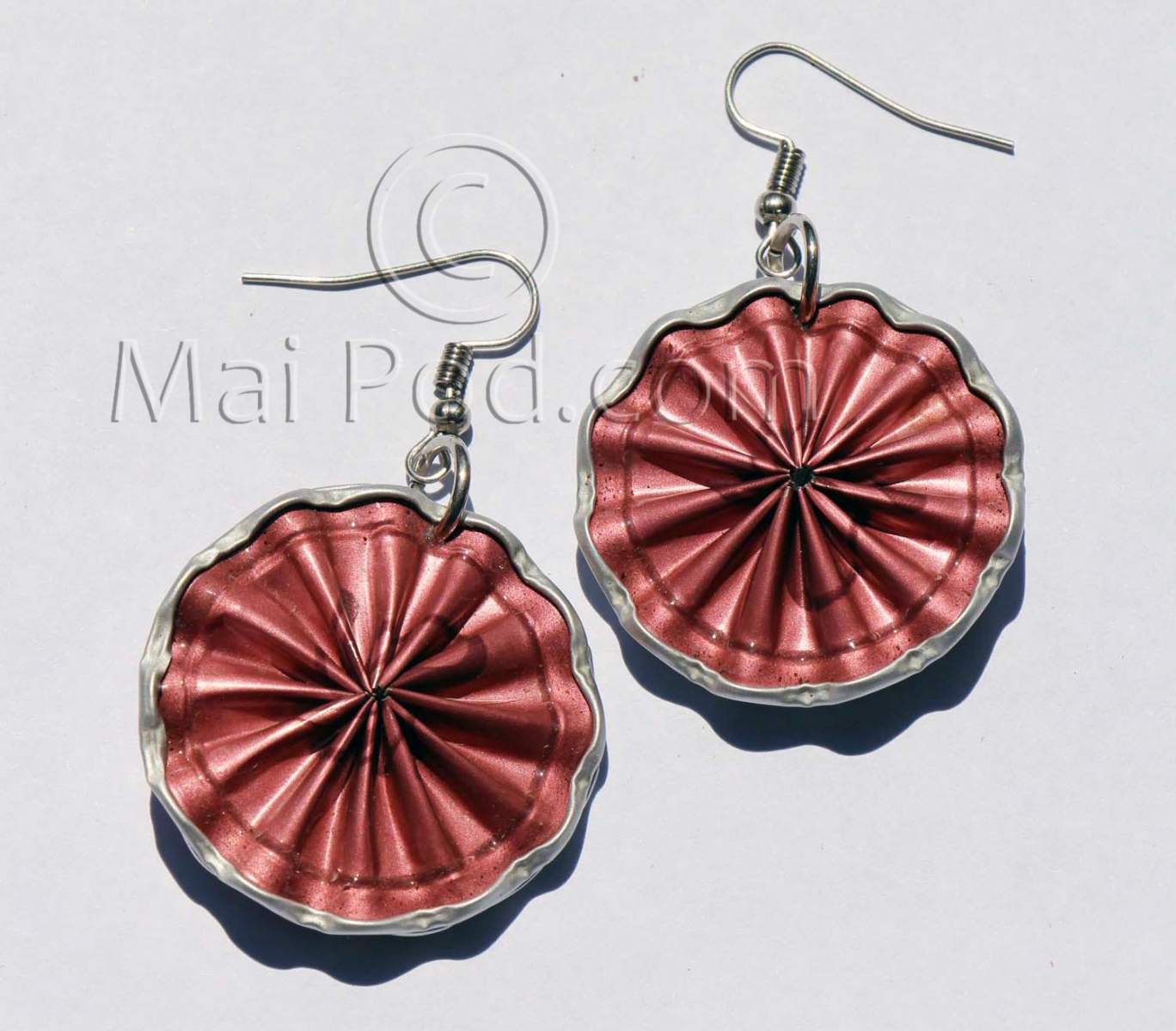 If you have pierced ears, Mai P. likely has made a set of earrings that appeals to you. Colourful, bright, and playful, it is hard to recognize these items as former coffee pods.